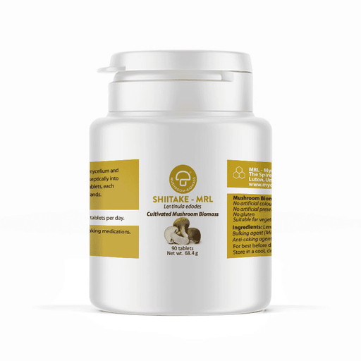 Mycology Research (MRL)Shiitake-MRL tablets (Lentinula edodes) contains both mycelium and primordia (young fruit body) cultivated into a biomass that is grown on a steril...