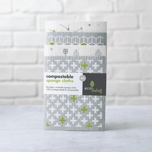 ecoLivingA set of compostable sponge cloths. Made in Europe. Choose a set of 4 different water-based prints or a set of 2. Compostable sponge cleaning clot...