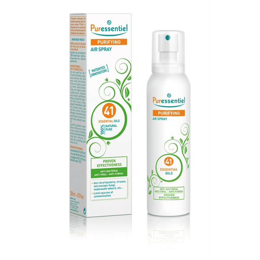 Puressentiel100% natural air purifier contains 41 pure and natural essential oils. Spray anywhere in the home, office or car. Freshen fabrics, carpets, bedding...